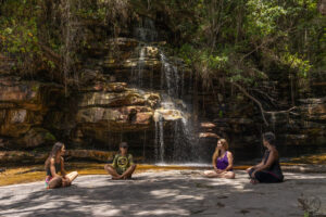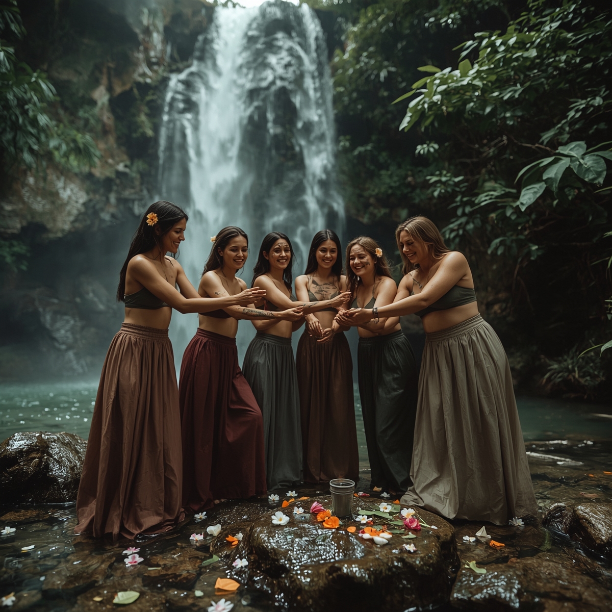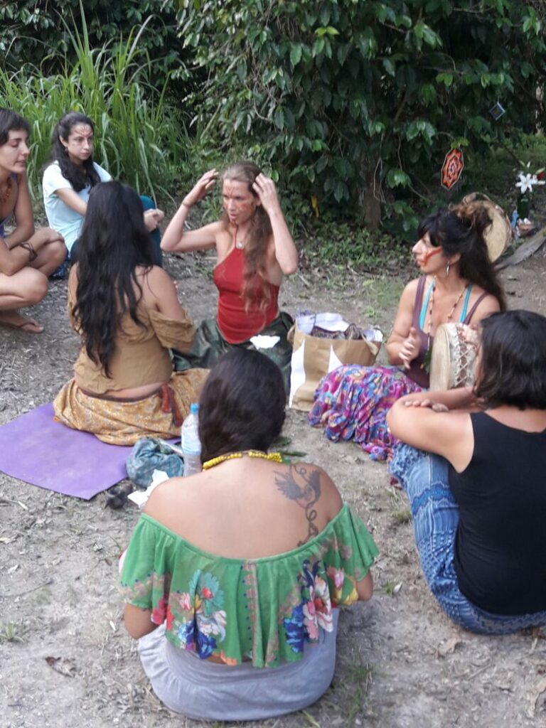 Caminharemos juntas pela natureza, mergulharemos nas águas da cachoeira, celebraremos o corpo como templo com pintura de argila e flores, dançaremos com os elementos e compartilharemos momentos profundos de escuta e irmandade.