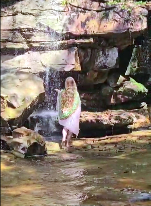 Você se banha em uma cachoeira como em um rito antigo —