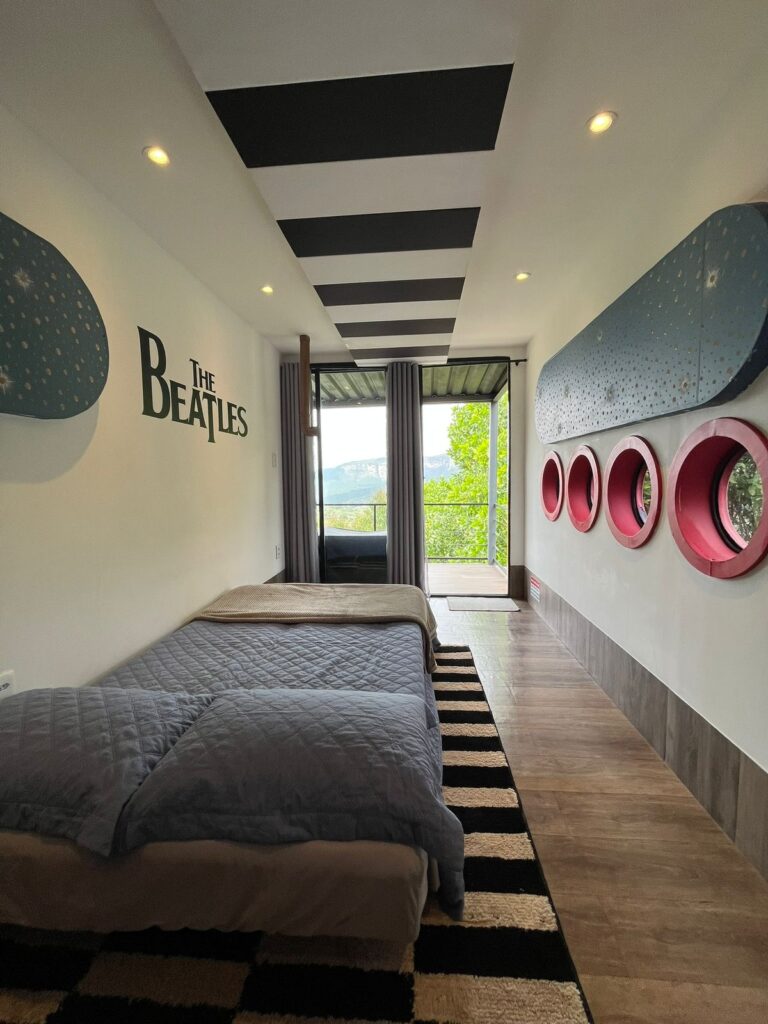 Os quartos são temáticos e cheios de personalidade, inspirados em ícones da música que marcaram gerações: Janis Joplin, Pink Floyd, Yellow Submarine e Black Sabbath. Cada ambiente traz uma energia única, criando o cenário perfeito para o seu descanso e integração.